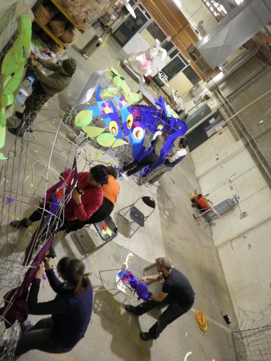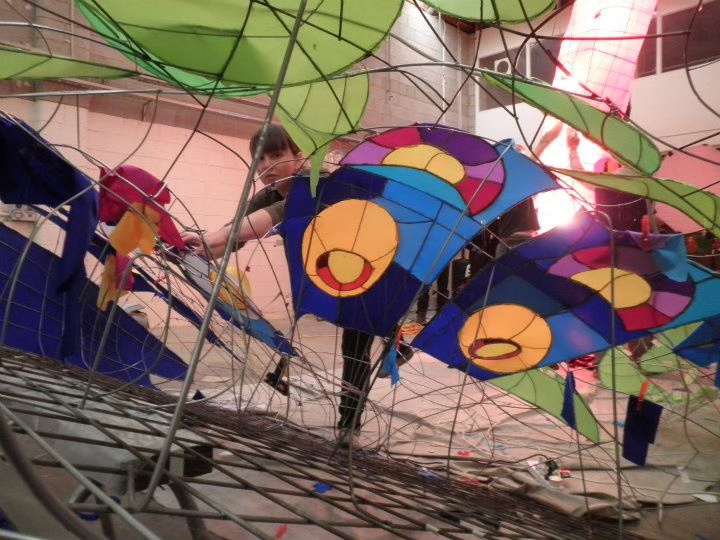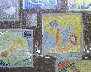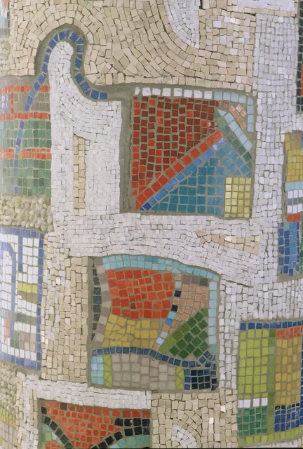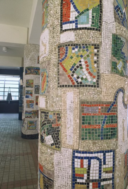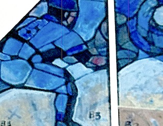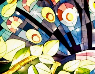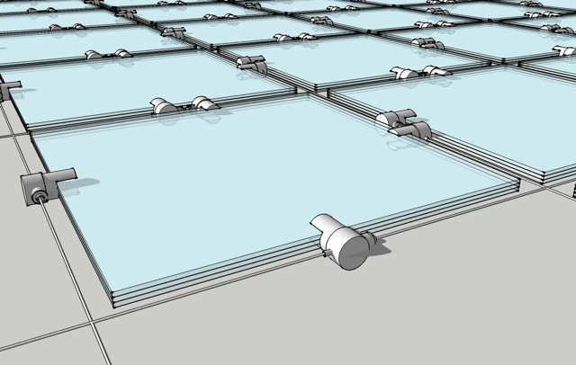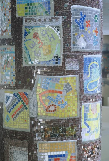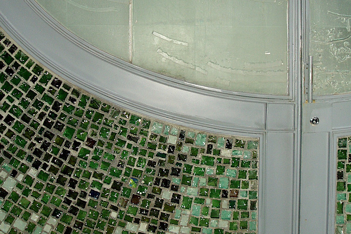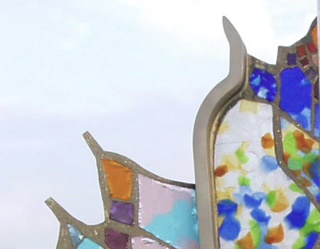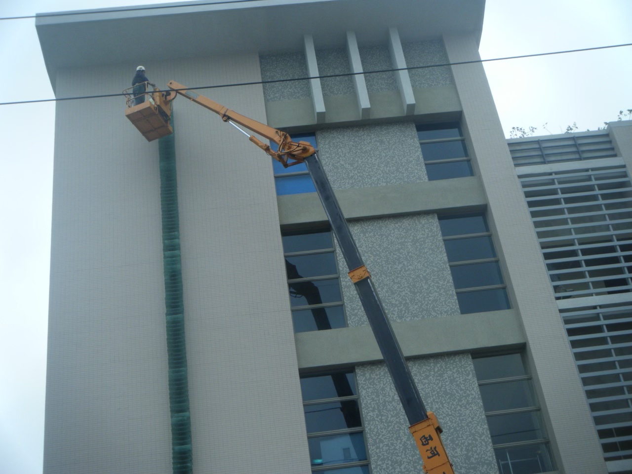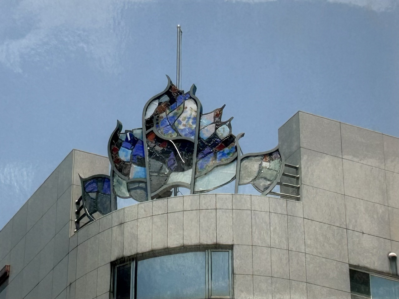 而在整體性與藝術性兼顧的考慮下,本作品嘗試將整面玻璃帷幕 視為紙材,在其上揮灑中國書法文字之美,利用噴砂鐫刻文字線 條,營造一種類似碑文的美感。