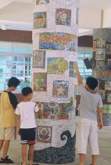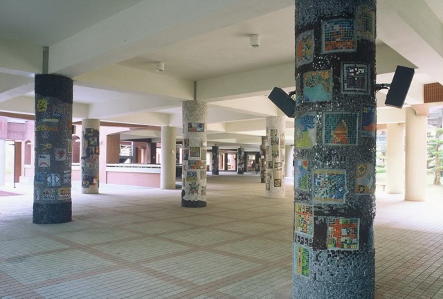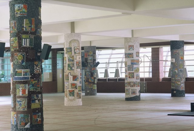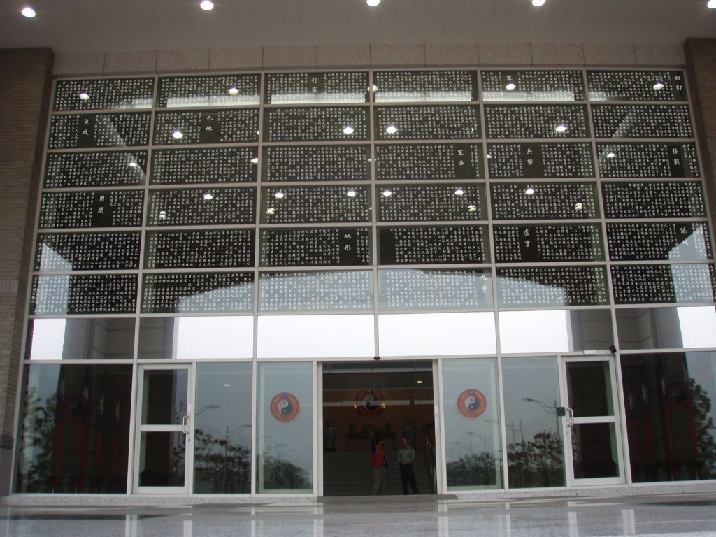 《孫子兵法》被奉為兵家經典,對各國的軍事學發展影響深 遠,而國防大學立校宗旨與發展遠景在培育武德武藝兼備之建軍 備戰領導及專業人才,與國際接軌成為一流軍事學府,所以我們 將《孫子兵法》全文13篇6000餘字,利用噴砂方式將其文字蝕刻 在透明玻璃上。因校部大樓已經完工啟用,在儘量不更動原建物 之優先考慮下,文字噴砂玻璃將疊合在原來之玻璃後方。
